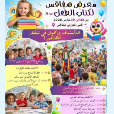 25 عارضا في الدورة 31 لمعرض صفاقس لكتاب الطفل تعيش مدينة صفاقس في الفترة الممتدة من 23 إلى 31 مارس الجاري، على إيقاع الدورة الـ31 لـ "معرض صفاقس لكتاب الطفل"، الذي يُقام تحت شعار: "الكتاب صديق.. إمتاع وتوثيق". وتشهد هذه الدورة مشاركة 25 عارضاً، يمثل أغلبهم دور نشر تونسية مختصة في أدب الطفل، إلى جانب مشاركات من عدة دول على غرار فلسطين وسوريا والأردن والسنغال. وإلى جانب عرض الكتب والمجلات […]