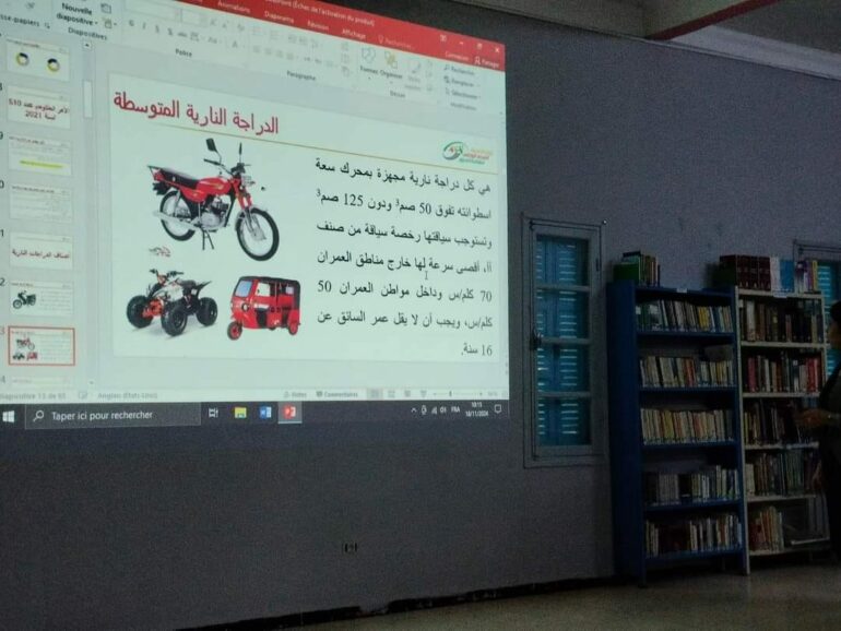 بالشراكة مع المرصد الوطني لسلامة المرور Onsr اقليم الوسط الغربي ومعتمدية حاجب العيون انتظم يوم الاثنين 18 نوفمبر 2024 بفضاء المكتبة العمومية يوم تكويني في السلامة المرورية لسائقي الدراجات النارية و كيفية استعمال الطريق تحت اشراف السيد النقيب عبد المنعم شفرة و الانسة نورة العباسي ممثلة عن مدرسة تكوين للسياقة.