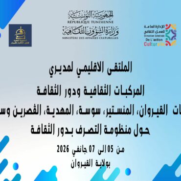 insert_link اخبار ثقافية الملتقى الاقليمي لمديري المركبات الثقافية ودور الثقافة بولايات: القيروان، المنستير، سوسة، المهدية، القصرين وسليانة today5 يناير، 2026 5